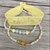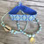 Elemente: goldfarbener Seepferdchenanhänger, türkisfarbene Quaste